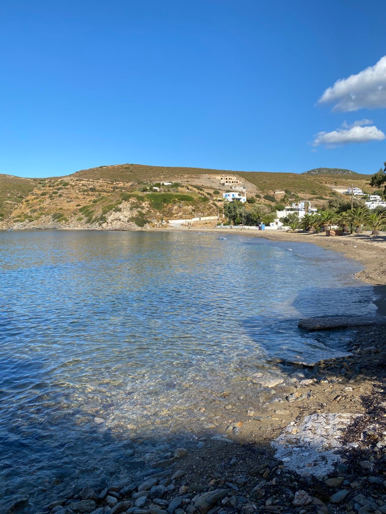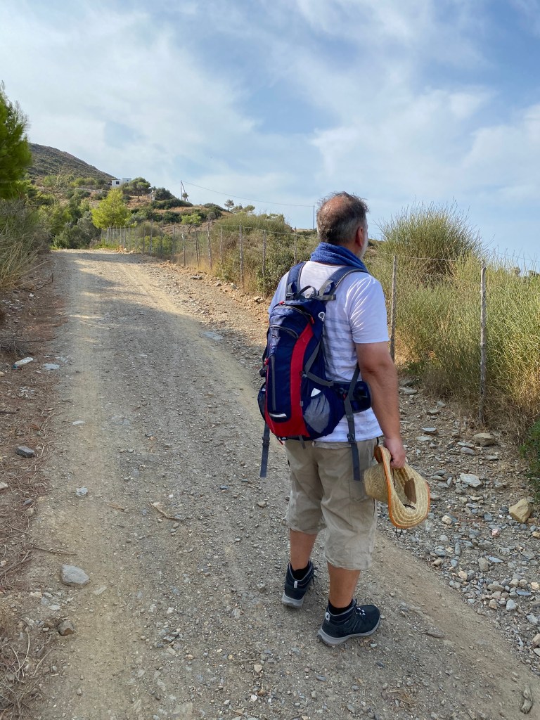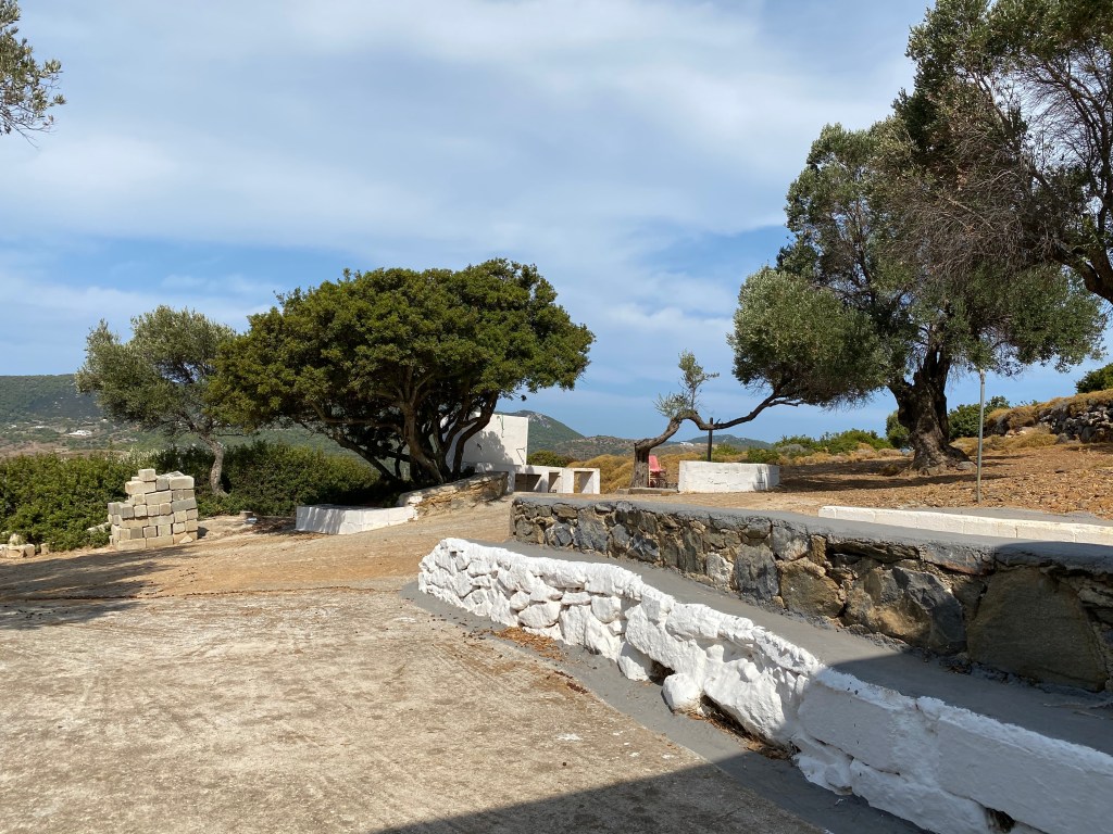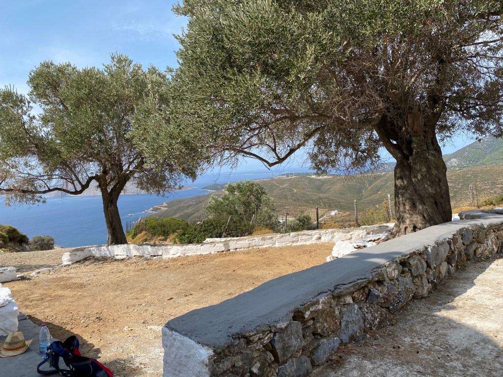 Die nächsten Tage dienten meiner Entspannung. Jeden Tag schwimmen gehen und lecker essen. Wir haben aber auch etwas für unsere Fitness getan und sind an 2 Tagen in dieser Woche wandern gegangen. Die erste Wanderung führte uns zu einer kleinen Kirche. Hier kann man direkt von Acherounes loslaufen. Zuerst in Richtung Aspous die Hauptstraße entlang in praller Sonne. Hier ist nicht wirklich viel Verkehr, sodass sich Hauptstraße gefährlicher anhört als sie ist. Dann geht es rechts ab und nur noch bergauf. An der Kirche haben wir eine kurze Rast gemacht und sind dann mit Blick auf Kalamitsa über Linaria wieder zurück gelaufen. Das waren in Summe 10 Kilometer. Auf dem Rückweg haben wir beim Bäcker in Linaria noch einige gekühlte Getränke zu uns genommen.